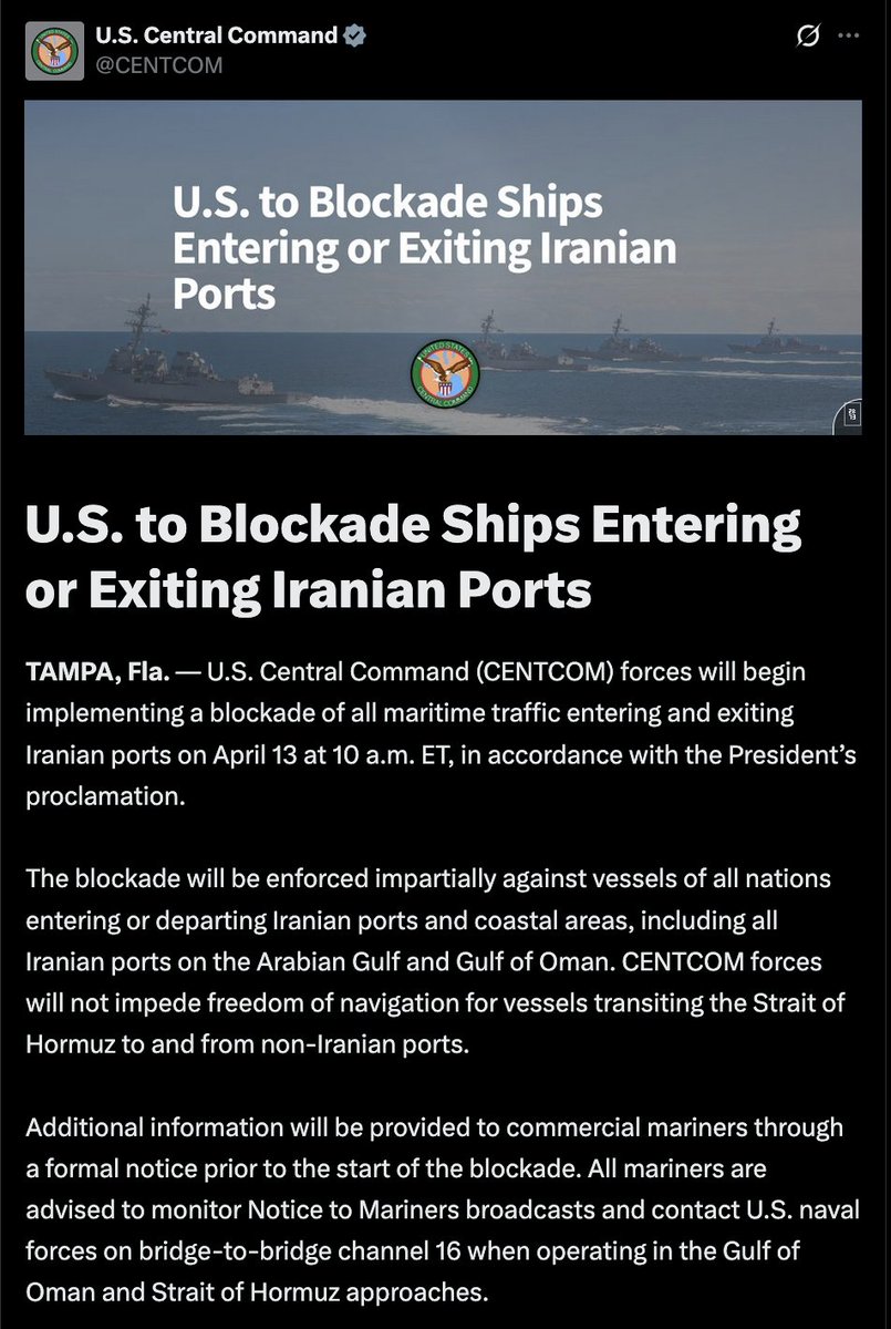4 天 前"即日起,世界最精锐的美国海军将开始封锁所有试图进出霍尔木兹海峡的船只。"——唐纳德·J·特朗普总统