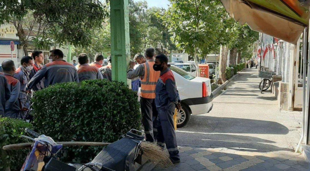 Khoy, NW Iran Municipal workers gathered outside the Khoy City Council. They say they have not received 5 months of their wages and benefits. Iran Protests