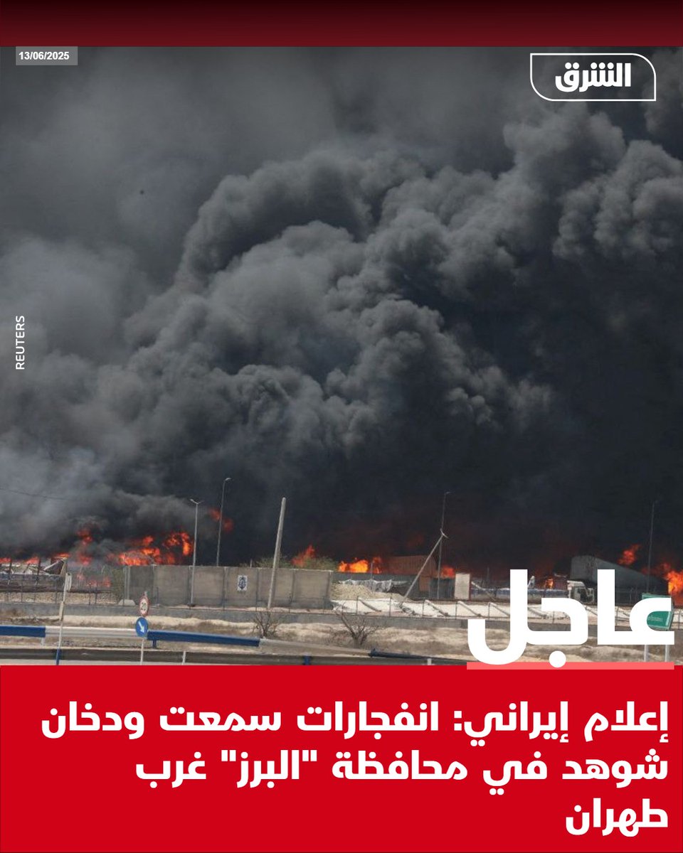 Tasnim News Agency: An explosion and smoke rising on Piroozi Street in eastern Tehran.
