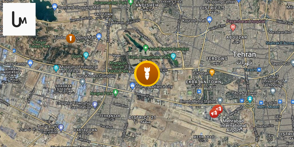 Iranian media: Airstrikes target an area near Azadi Tower and Mehrabad Airport in Tehran