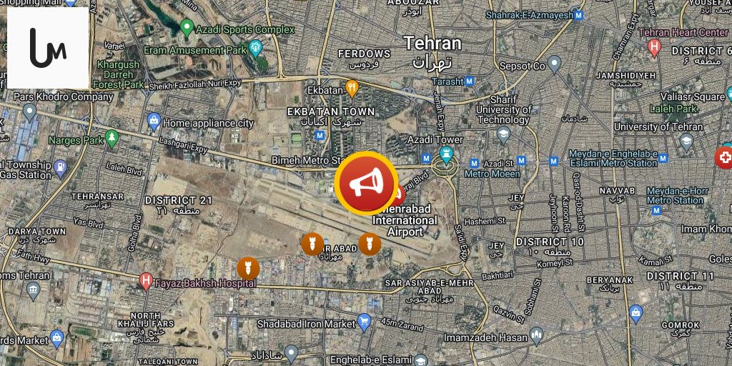 Airstrikes on Mehrabad AB vicinity, Western Tehran, Tehran Province, Iran