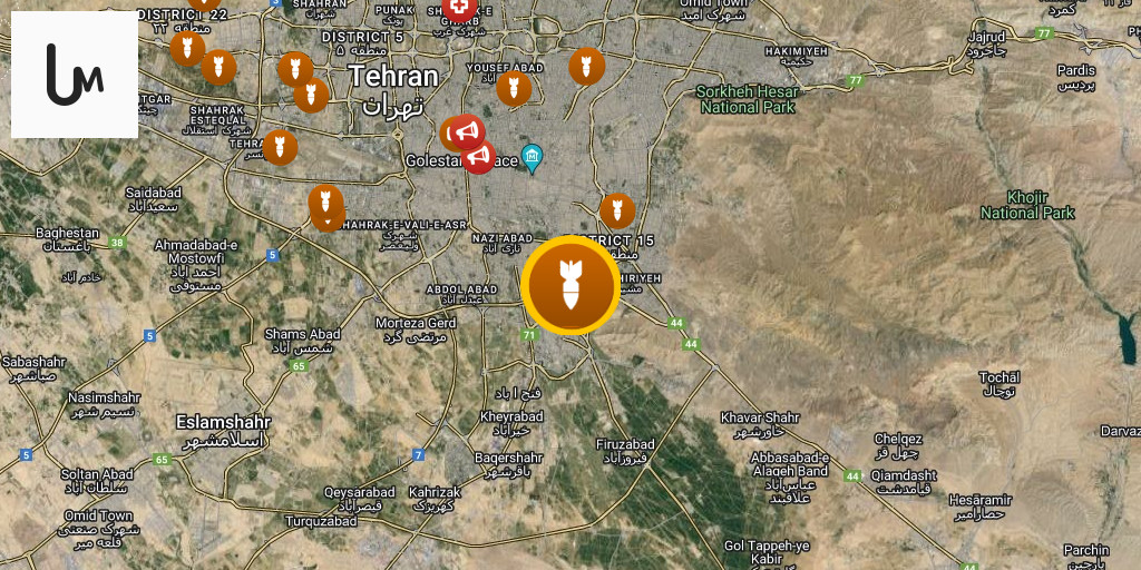 Israeli airstrikes target the "Waterfall" public park north of Tehran.